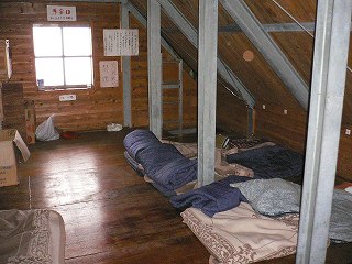 だけなので、翌朝の天気に期待して 少し早めですが避難小屋の寝床で横になりました。