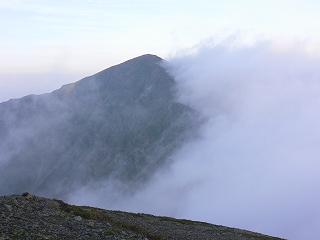 (中岳避難小屋から見た悪沢岳)