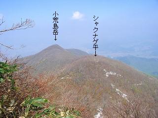 (急斜面から見た小荒島岳とシャクナゲ平)