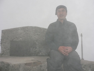 頂上小屋の上に山頂の標識があって、最高地点の剣ヶ峰は立ち入り禁止でした。