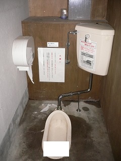 (トイレの入り口、左上に使用電力表示板)_______