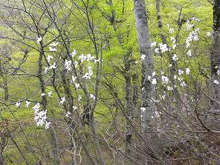 ようになって、新緑の中ではタムシバが白く可憐な花を付けてました。