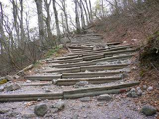 (二合目と三合目の中間にある階段)_______(傾斜がきつくなった登山道)