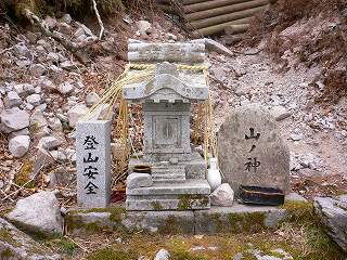 山ノ神が祀られた五合目まで登ると大きなブナの木が少なくなって眺めが良くなり、左下に