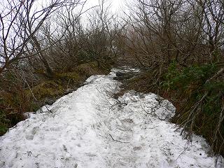 手前から登山道にも雪が残るようになりました。
