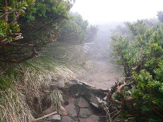 八合目の上で きつい登山道が終わると、そこから先は天然記念物のダイセンキャラボク