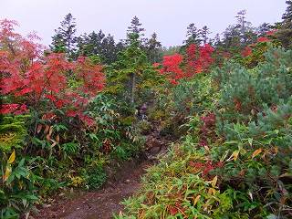 より針葉樹のほうが多くなって、その中に点在するナナカマドの赤が目立つようになりました。