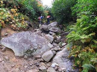 ____(大きな岩の登山道)____________(石が転がる登山道)