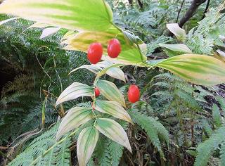 ___(エゾオヤマリンドウ)__________(赤い実をつけたタケシマラン)