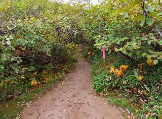 ___(ハイマツの中の登山道)____________(鞍部にある木道)