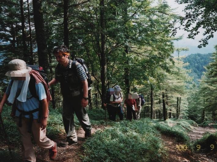 なので景色が見えないうえに 登山道が著しく痩せた所もありました。