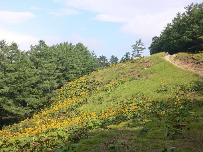 (防火帯に咲くマルバダケブキ)