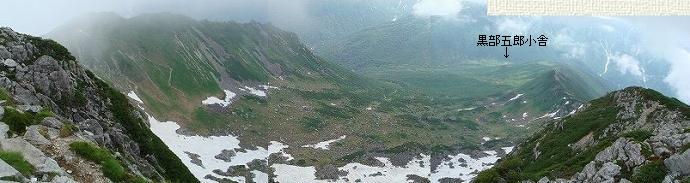 山頂の東側にあるカールの下に黒部五郎小舎が見えました。
