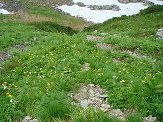 前回は稜線の登山道を下りたので、今回は お花畑が広がるカールの中を下りました。