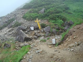 __(なだらかな稜線の登山道)___________(三俣蓮華岳の分岐)
