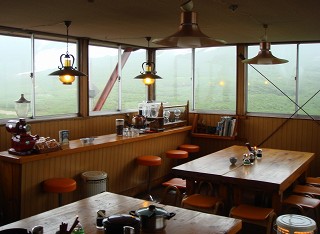 _____(山小屋の受付)____________(食堂のコーヒーカウンター)