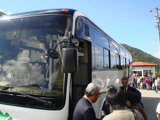 (濃飛バス、後ろに沢山の人が並んでいます)