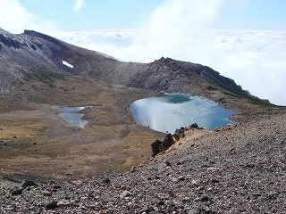 (鶴ヶ池と畳平、後方は恵比寿岳と魔王岳)