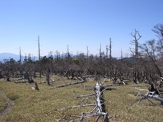 (日出ヶ岳から見た正木ヶ原に行く登山道)