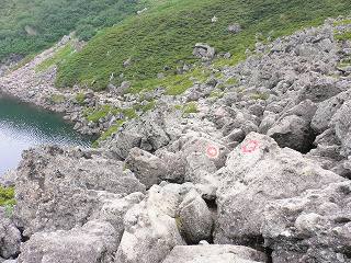 _____(風吹大池の分岐)____________(大きな岩が転がる斜面)