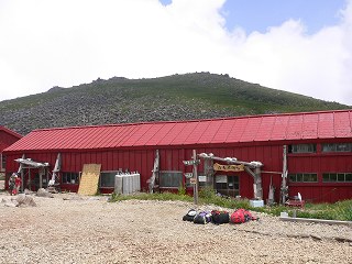 白馬大池山荘は売店と厨房と食堂が半分以上を占めているため 宿泊スペースは外から