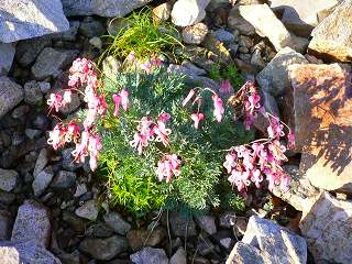 __(雷鳥坂から見た白馬大池)_________(雷鳥坂に咲いていたコマクサ)
