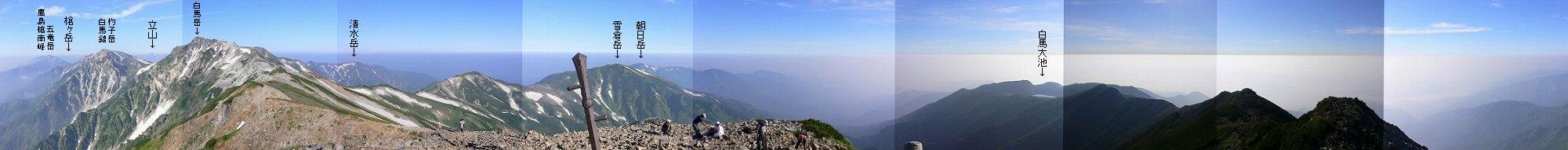 (白馬尻荘と白馬尻小屋、3時の位置が大雪渓)____(白馬三山と立山と剱岳)