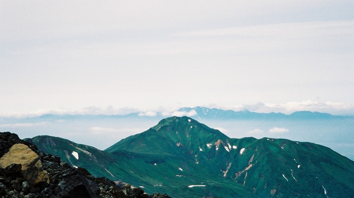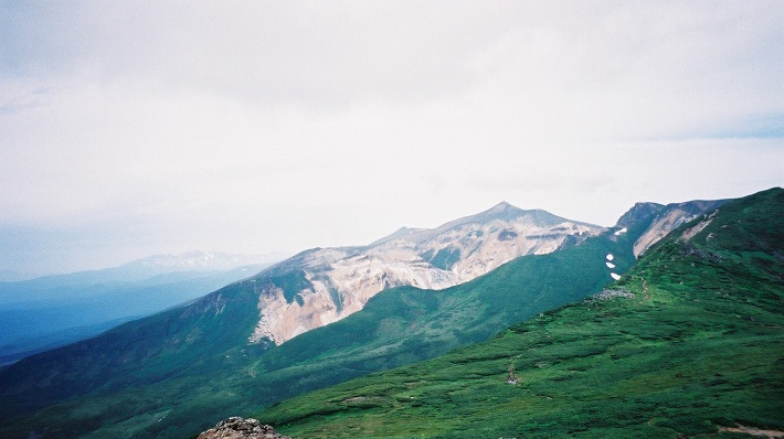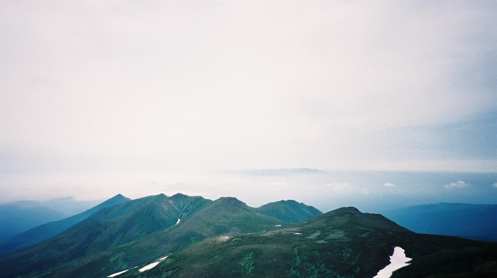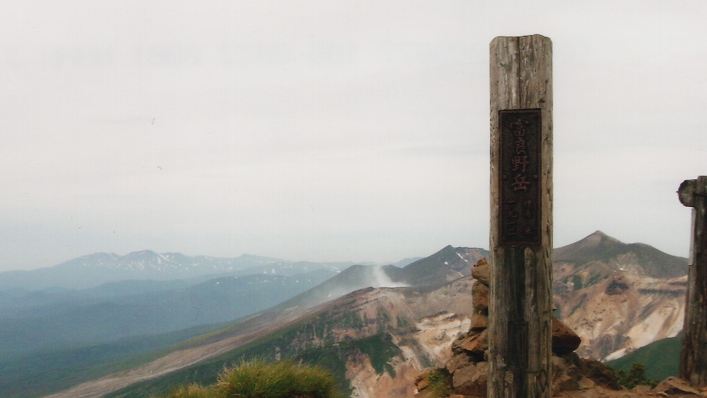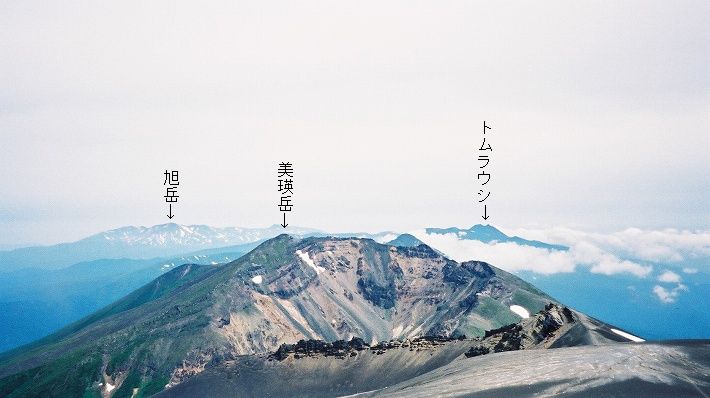 山頂の眺望は360度で、北東にある美瑛岳の奥に大雪山とトムラウシ