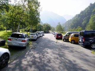 駐車場は馬場島荘の前に30台あって、手前にも広い駐車場があります。(合計150台)