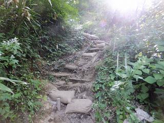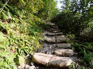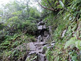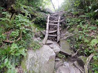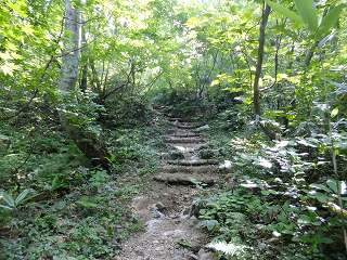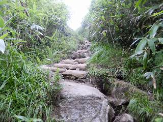 ___(段差の大きい登山道)_____________(笹の中の登山道)