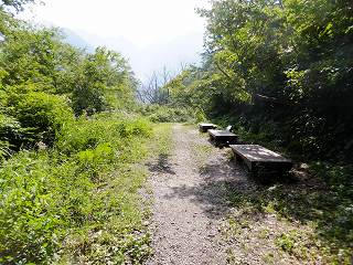 登山口から40分登って1000mの展望台に着くと 少し広くなった所に3脚のベンチがありま