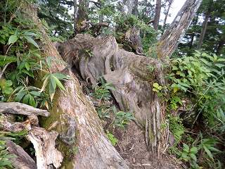 1200m地点の手前から登山道に木の根が多くなって、場所によっては 木の根をまたいで