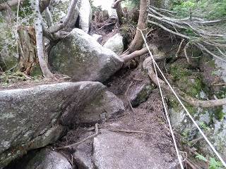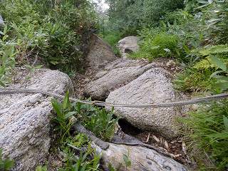 ___(木の根が出た登山道)______________(新道のロープ場)