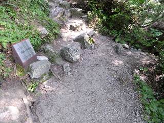 新道を30分登った所で 左にロープが張られた旧道の出口があって、そこから5分登った所