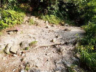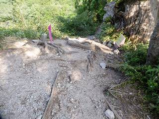 ここから新道を登りましたが、この登山道は踏まれ方が足りないうえに表土が流されて
