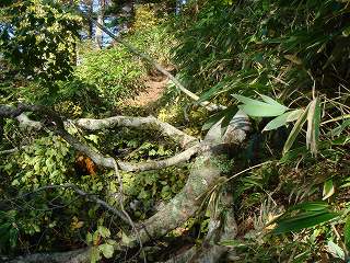 (登山道に落ちた大きな枝)