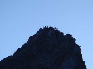____(夜明けの槍の穂先)_____________(穂先で御来光を待つ人)