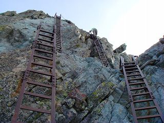 最後に穂先の先端にある2連の鉄製のハシゴを登って槍ヶ岳の山頂に立ちました。