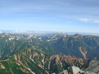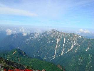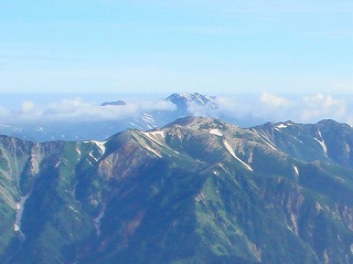 北北西には富山方面の山が見えて、野口五郎岳の奥に立山と剱岳が見えました。