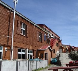 ___________(槍ヶ岳山荘と槍の穂先)