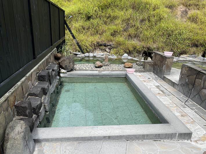 露天風呂には2つの浴槽があって、手前の浴槽は3人が入れる大きさで