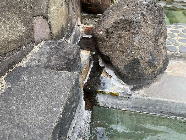 この浴槽だけかけ流しに泣ていて、浴槽からあふれた温泉は川に流れ