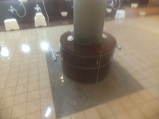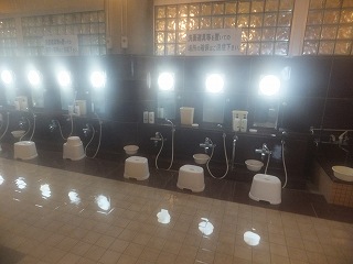 赤いベレーは 道の駅阿寒丹頂の里の中にある宿泊施設です。 (赤いベレー) ![]() _______(フロント)__________________(ロビー) ロビーの奥に浴室の入り口があります。 (浴室の入り口に掛る湯のれん)脱衣所は広くて プラスチックの籠が入った脱衣棚の他に100円リターン式のロッカーもあり ますが、ロッカーは狭かった。 ![]() ________(脱衣所)________________(洗面ドレッシング) 脱衣所にある温泉分析書によると 源泉名は自然休養村泉源、泉質はナトリウム-塩化物泉で、 浴槽内の温度が低くなった時だけ熱交換器を使用し、循環濾過と塩素消毒をしています。 (温泉分析書)脱衣所と浴室の間にある部屋の浴室側のドアの下にあるパイプから、足を暖めながら キレイにする温泉が出ています。 (温泉が出ているパイプが分かるかな)浴室に入ると 右の壁に9つ 左の壁に 2つの洗い場があって、その間にある柱の根元に 2つの蛇口があって、洗い場のソープ類は ボディーソープとリンスインシャンプーと固形石鹸 があります。 ![]() _____(右の壁の洗い場)______________(柱の根元にある蛇口) 浴槽は2つに分かれていて、左の浴槽は 中にある仕切りで さらに2つに分かれています。 左側の42℃と書かれた湯口がある浴槽は42℃よりも熱い感じて、その温泉が流れ込んで いる隣の浴槽は ややぬるめです。 (手摺の奥にある仕切りが分かるかな)源泉の投入量が多くて もったいないような量の温泉が掛け流しになっています。 浴室が暗くて分かりにくかったが、温泉は番茶を薄くした色に見えて 臭いはしませんでしたが 口にすると かなりしょっぱくて、肌触りは ヌルスベとツルスベの両方を併せ持っています。 ※ 2枚とも手ブレしちゃった。<m(__)m> ![]() ____(42℃と書かれた湯口)____________(浴槽からあふれる温泉) 右奥の40℃の浴槽は 一部が寝湯になっていて、温度は 中央の仕切られた浴槽と同じです。 前面のガラスは大きいが、暗かったのと磨りガラスで 開放感は感じませんでした。 (右側の浴槽)浴室の右にサウナと水風呂がありますが、私は どちらも利用していないので分かりません。 (水風呂とサウナの入り口)温泉は体の芯から温まる泉質で、湯上りも なかなか汗が引きませんでした。