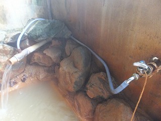 温泉は源泉かけ流しで 浴槽からあふれた温泉は敷地の外に流れ出ています。