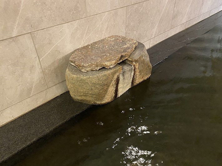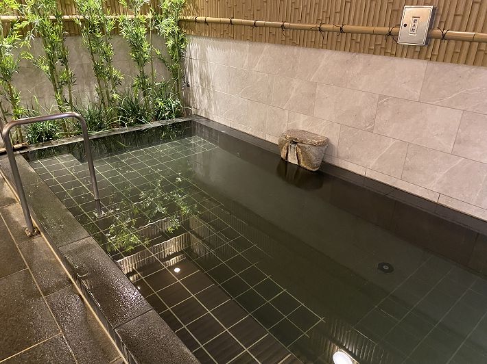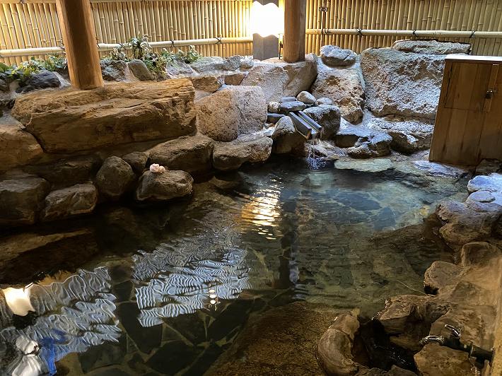 温泉はかけ流しで浴槽からオーバーフローになってます。