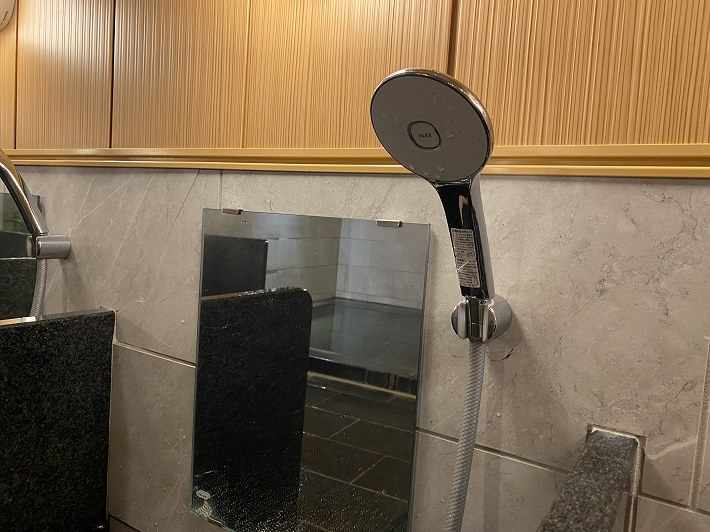 浴室の右にある洗い場には御影石の仕切り板がついてます。