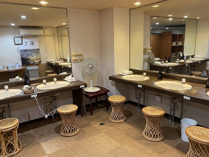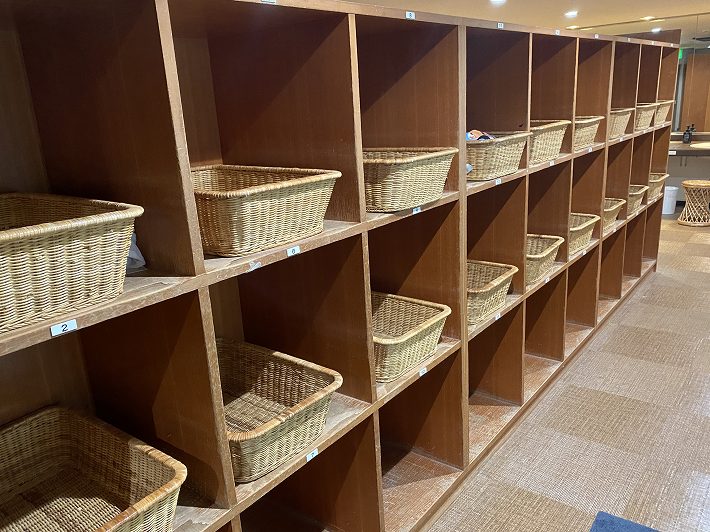 _____(浴室の前にある貴重品ロッカーとテーブル)