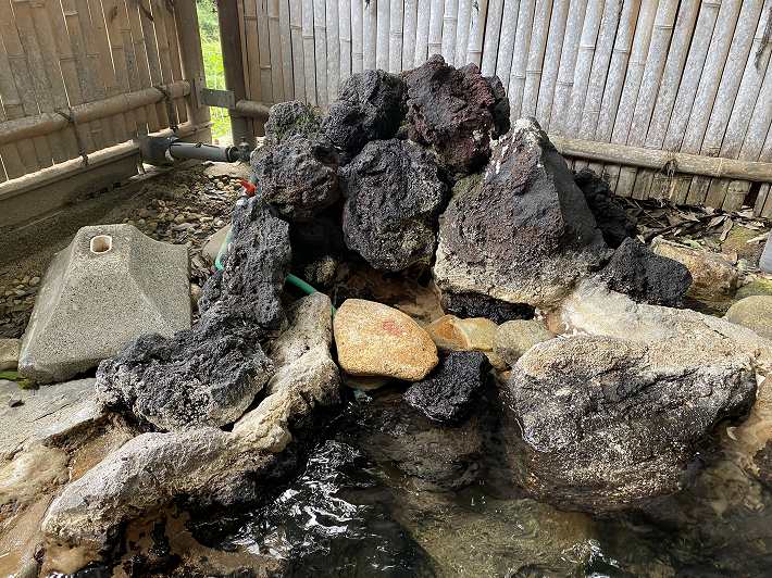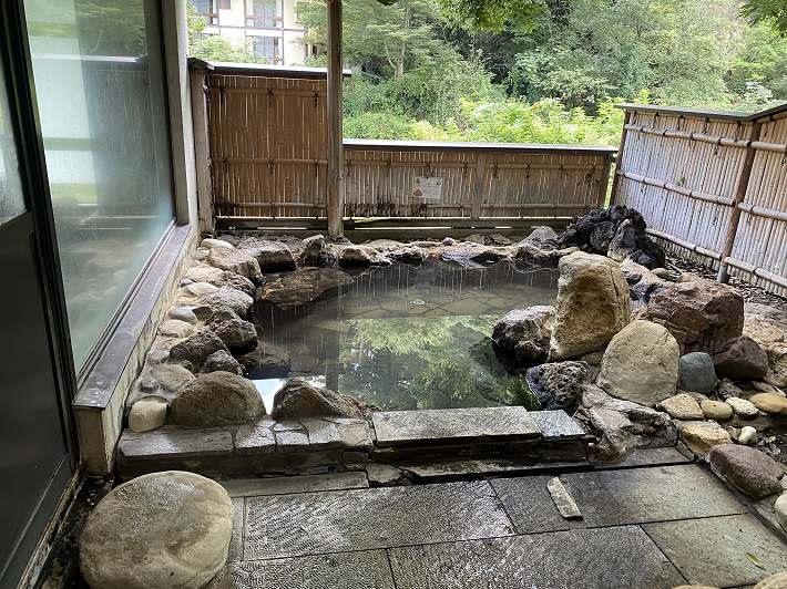 露天風呂は4人が入れる岩風呂ですが、周囲を木に囲まれているので