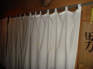 (浴室の入り口に掛かる湯のれん)