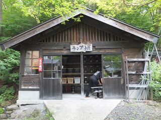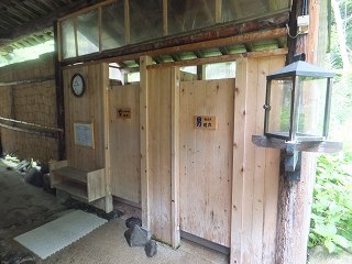 内湯から上がった後 裏庭にある露天風呂に向かうと、左に ランプ小屋があって・・